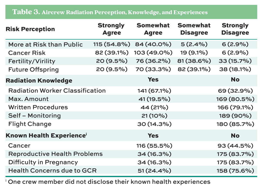 3.2 Aircrew Radiation Perceptions, Knowledge, and Experiences