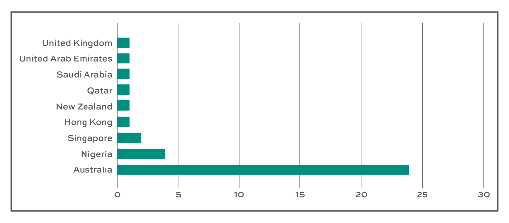 Analysis of the data revealed notable disparities in workplace fatality rates across different industries and countries. Thirty percent of survey respondents reported being based in Australia, while 26% came from the United Kingdom. Hong Kong and Singapore accounted for 18% of respondents, and the remaining 26% of respondents came from other countries (Fig. 3).
